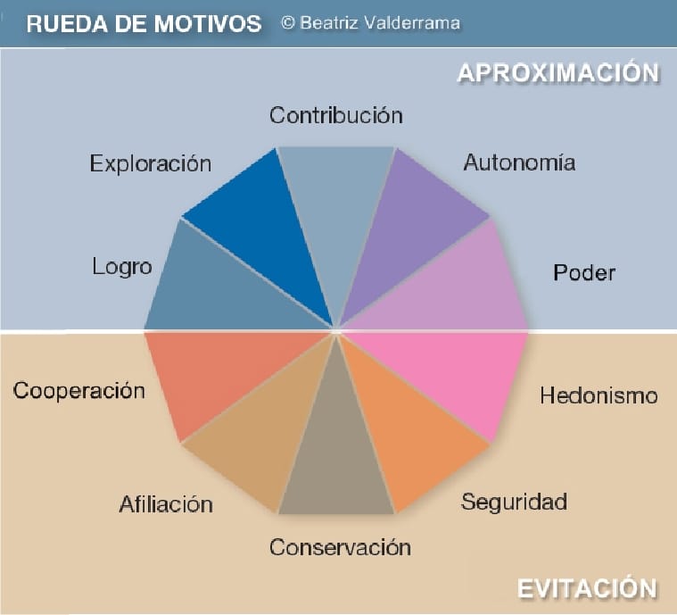 En mi libro “Motivación Inteligente”[1] presenté un modelo multidimensional de motivación, que pretende reflejar la diversidad humana de anhelos y expectativas: la Rueda de Motivos. Consta de cinco dimensiones bipolares, cuyos dos polos se representan contrapuestos en el gráfico (por ejemplo, logro/hedonismo). [pullquote] Las personas somos diversas también en cuanto a motivación, que es el motor emocional que nos impulsa. [/pullquote]