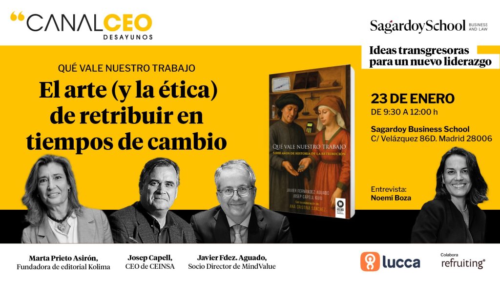 La temporada arranca el 23 de enero con el desayuno “El arte y la ética de retribuir en tiempos de cambio”, junto a Josep Capell, Javier Fernández Aguado y Marta Prieto Asirón, en Sagardoy School.