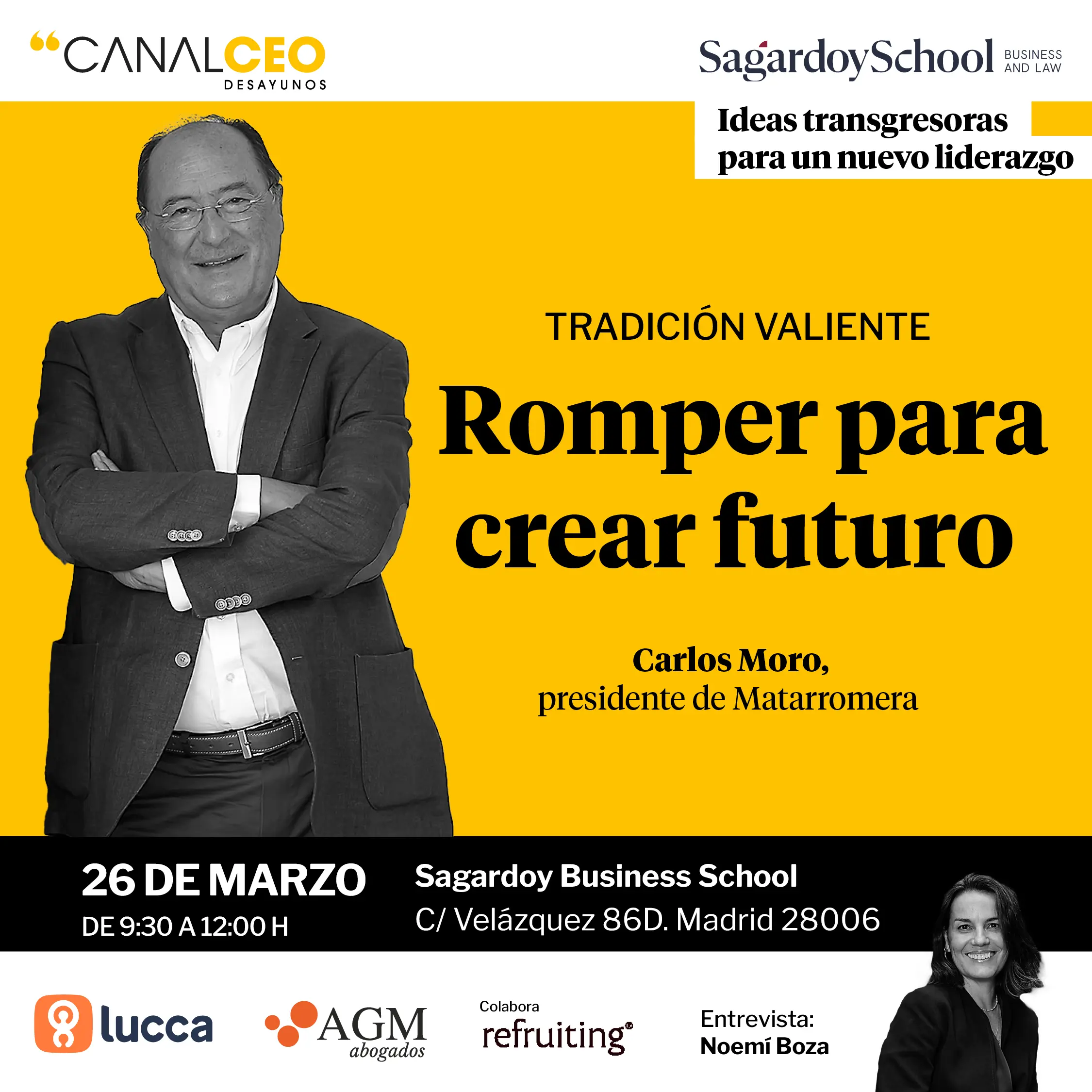 El acto congregó a más de un centenar de referentes del management y contó con la participación de Jordi Nadal, editor de la obra y fundador de Plataforma Editorial, Noemí Boza, directora de Canal CEO y Más Cuota, Isaías Táboas, presidente de Renfe, Alejandro Oroño, CEO de Ilunion, Silvia Baschwitz, Chief of Communication & ESG. Grupo Primavera, Amaya Medikeotexea, rectora Universidad Autónoma de Madrid.