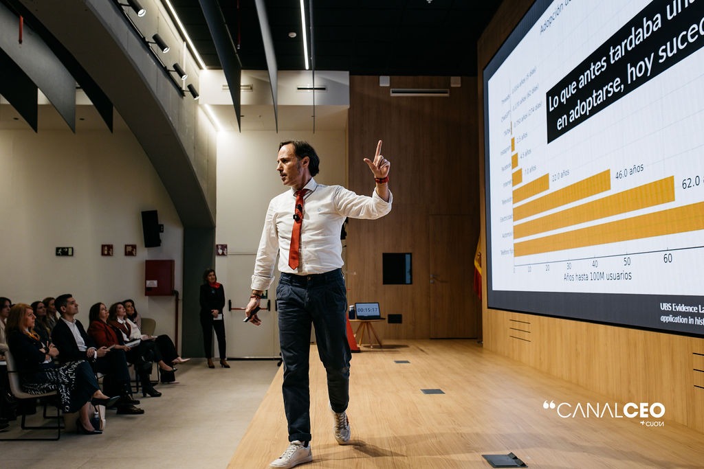 En otras palabras, el cuello de botella no está en lo que sabemos que hay que hacer, sino en nuestra capacidad para adaptarnos a la velocidad del entorno. Desde la neurociencia, explicó cómo el estrés activa en el cerebro el modo amenaza, que nos lleva a luchar, huir o refugiarnos en hábitos conocidos. Y, en ese contexto, lanzó una cuestión de calado: “¿La gente cambia porque vosotros lo digáis? Porque seáis los CEOs. ¿Automáticamente la gente cambia? O es un poco más complejo el asunto”.